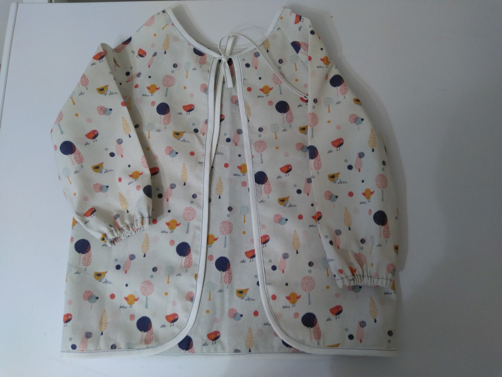 Bavoir tablier bleu et blanc, imprimé poussins 2/5 ans