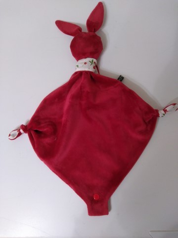 Tissu minky rouge et coton blanc imprimé cerises rouges. Le rembourrage est traité anti acariens et les coutures sont doublées pour plus de solidité. Le nez et les yeux sont brodés. Fait mains.