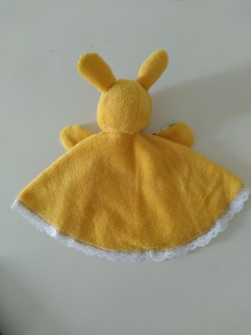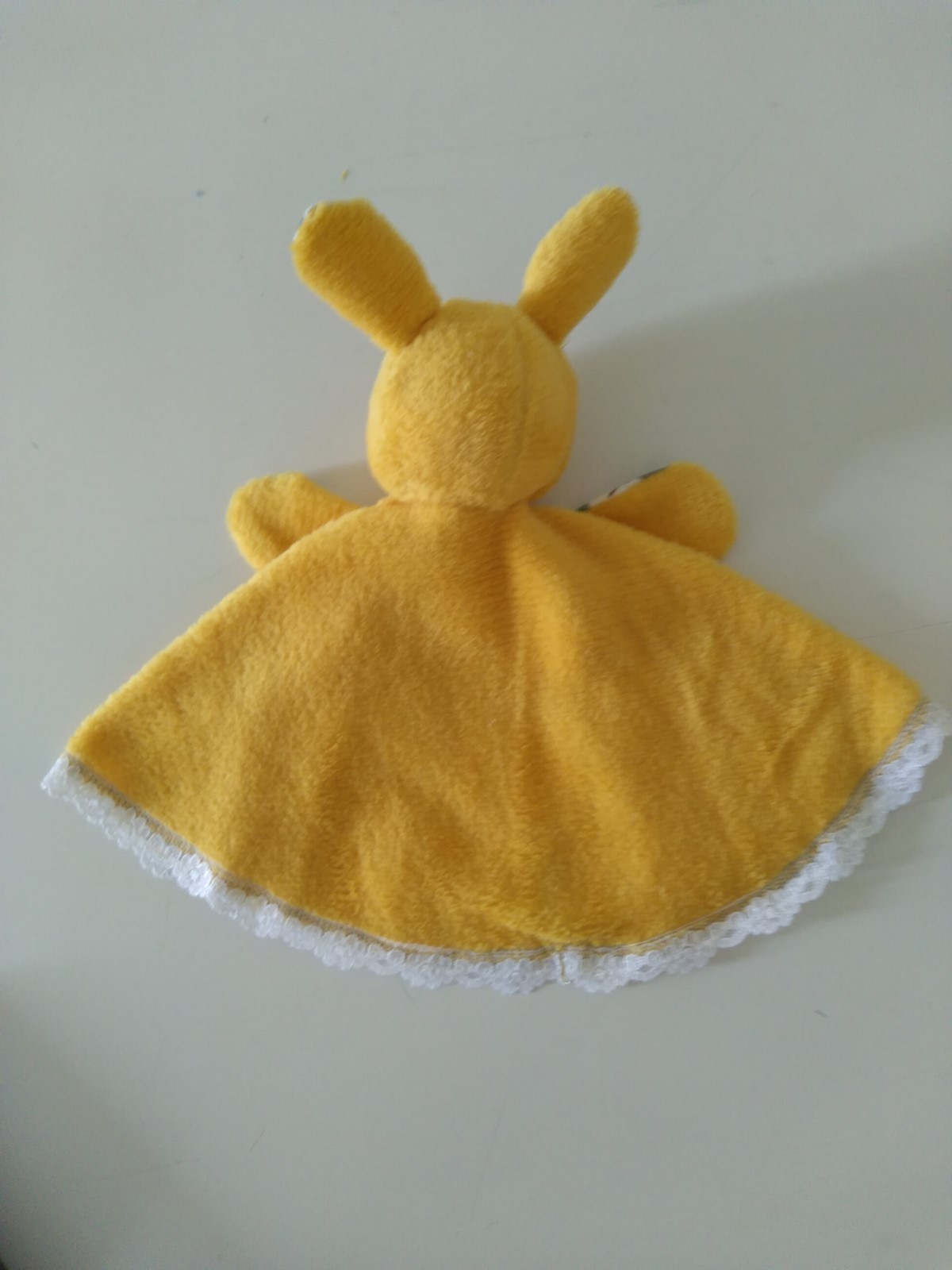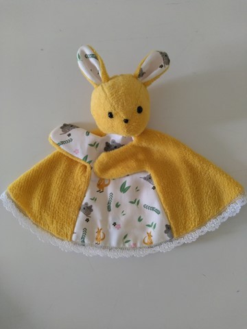 Tissu minky jaune et coton imprimé koalas. Yeux de sécurité et rembourrage de la tête traité anti acariens. Les coutures sont doublées pour plus de solidité. Finition dentelle blanche. Adapté aux enfants. Fait mains.
