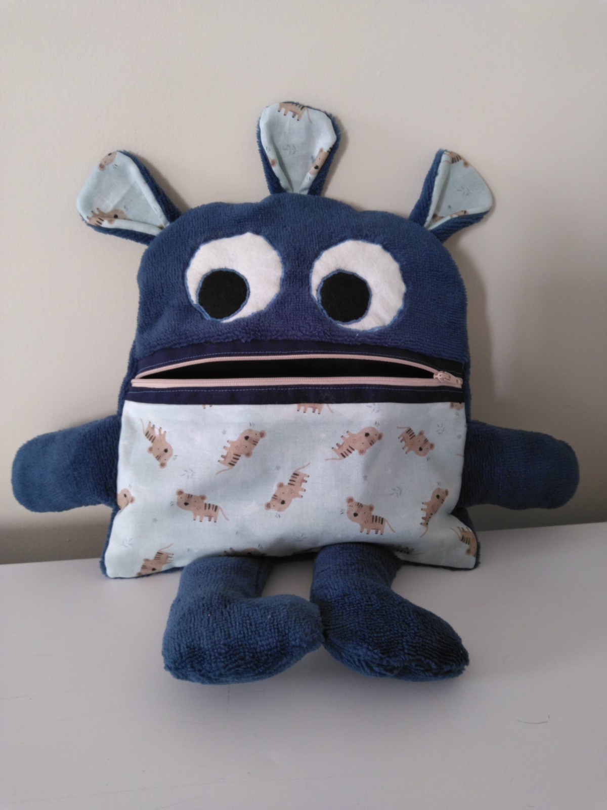 Tu as un chagrin, tes parents t'ont puni ou fâché, tu t'es fait mal etc...tu écris ton problème ou tu le dessines et tu le donne à manger à ton compagnon. Hop! plus de chagrin, il a tout mangé. plus qu'un doudou il sera un compagnon idéal pour te consoler.Mange soucis minky bleu marine, coton imprimé chats. Doublure coton bleu. Un zip beige ferme la bouche. Les yeux sont en appliqué. Les coutures sont renforcées pour plus de solidité. Adapté aux enfants. Travail artisanal. Fait mains.