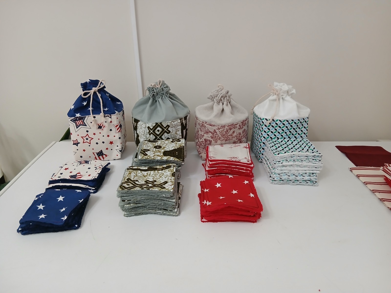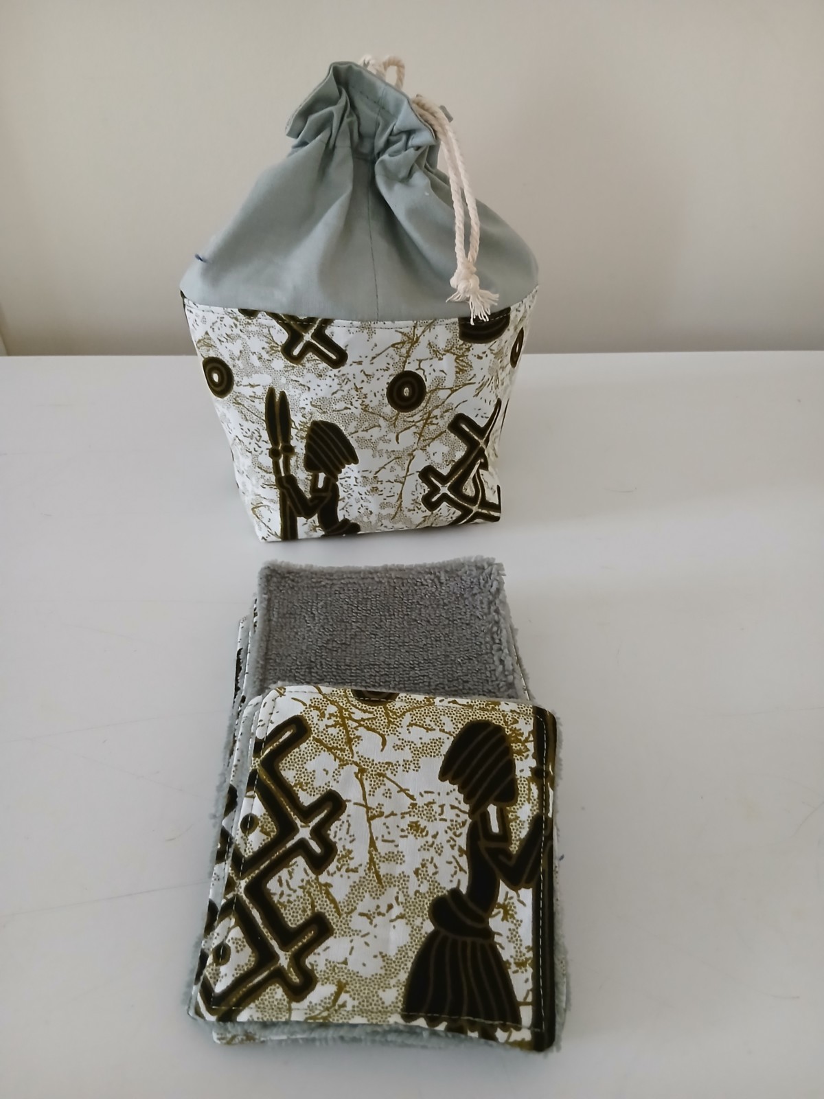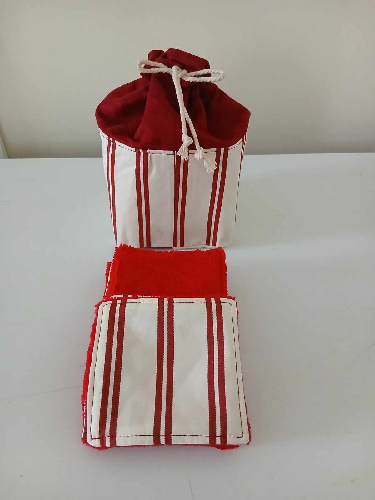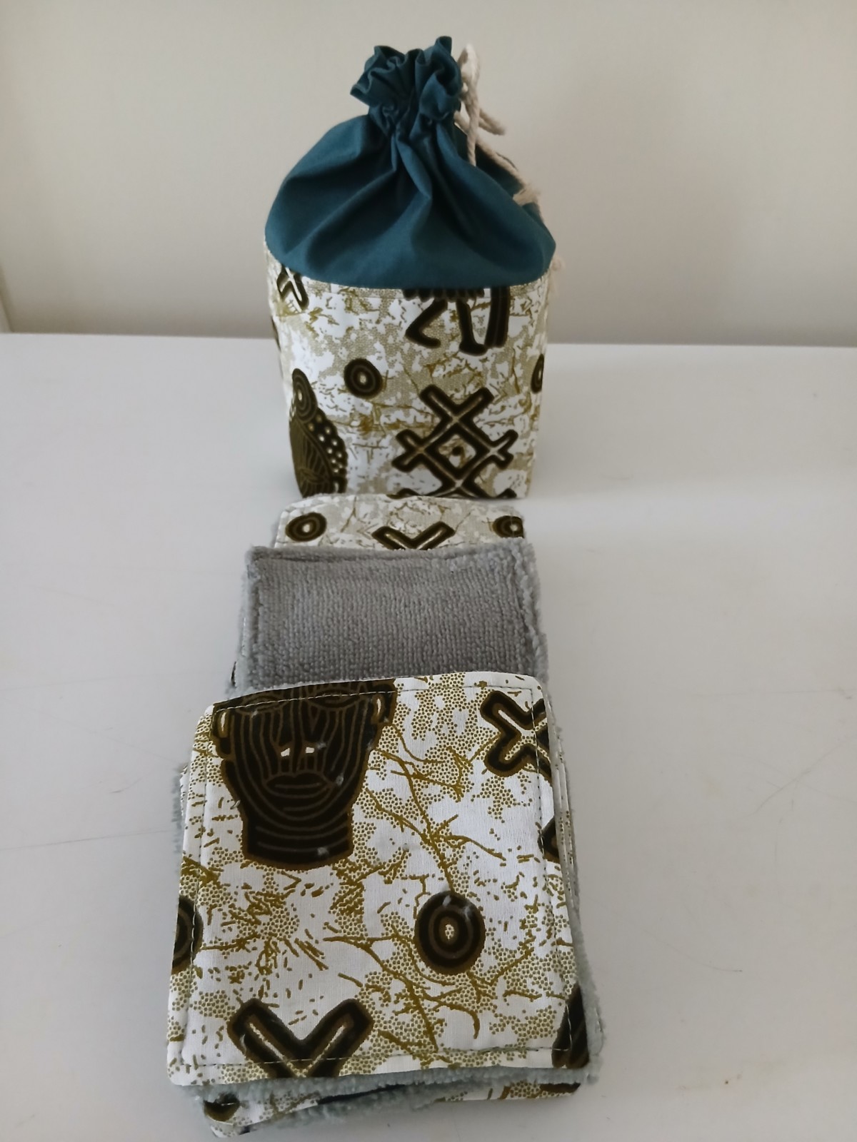 Ensembles pochons réalisés en tissus cotons et autre matières naturelles( telles que le lin, ainsi que tissus éponge de bambou) et 8 lingettes (+2 gratuites). Une petite cordelette ferme le pochon. Un joli cadeau à offrir à vos proches. Pratique, économique et bon pour la planète. En effet, vous n'aurez plus besoin d'acheter de cotons démaquillants et de ce fait, moins de déchets. Lavables et réutilisables très longtemps. L'éponge de bambou est 3 fois plus absorbante que l'éponge classique et naturellement antibactérienne. Un joli cadeau pour les fêtes. Fait mains